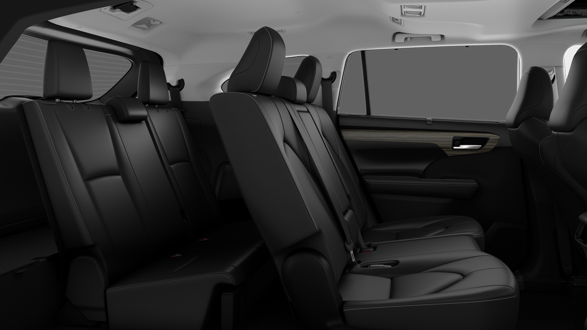 - 7-passenger seating with second-row fold-down captain's chairs and fold-down inboard armrests, adjustable headrests and two cup holders mounted on the floor; and 60/40 split, fold-flat third-row seats with sliding headrests and recline function