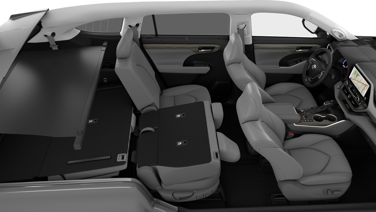 - 7-passenger seating with second-row fold-down captain's chairs and fold-down inboard armrests, adjustable headrests and two cup holders mounted on the floor; and 60/40 split, fold-flat third-row seats with sliding headrests and recline function