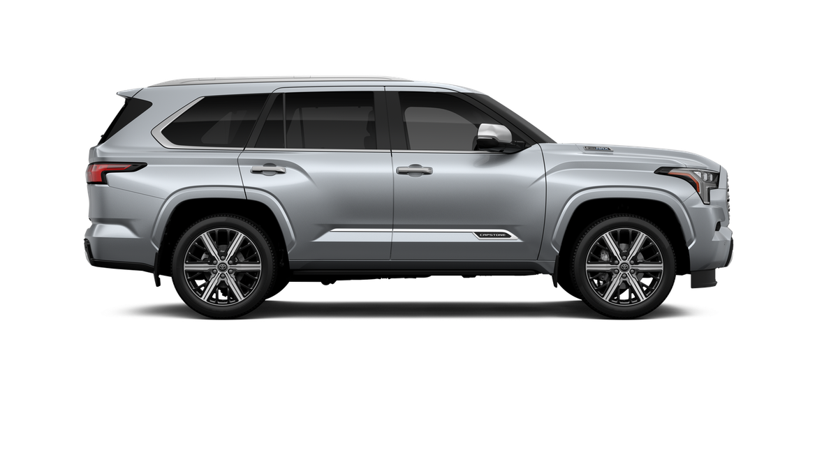 - Bright-chrome "SEQUOIA" rear door badge; chrome "CAPSTONE" door badge, garnish and window molding; color-keyed overfenders